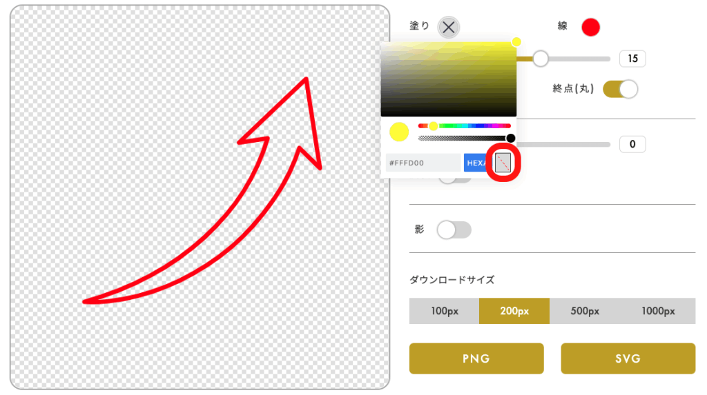 上の画像のように右下の斜線が入った箇所をクリックすると、塗りをなくすことができます。
