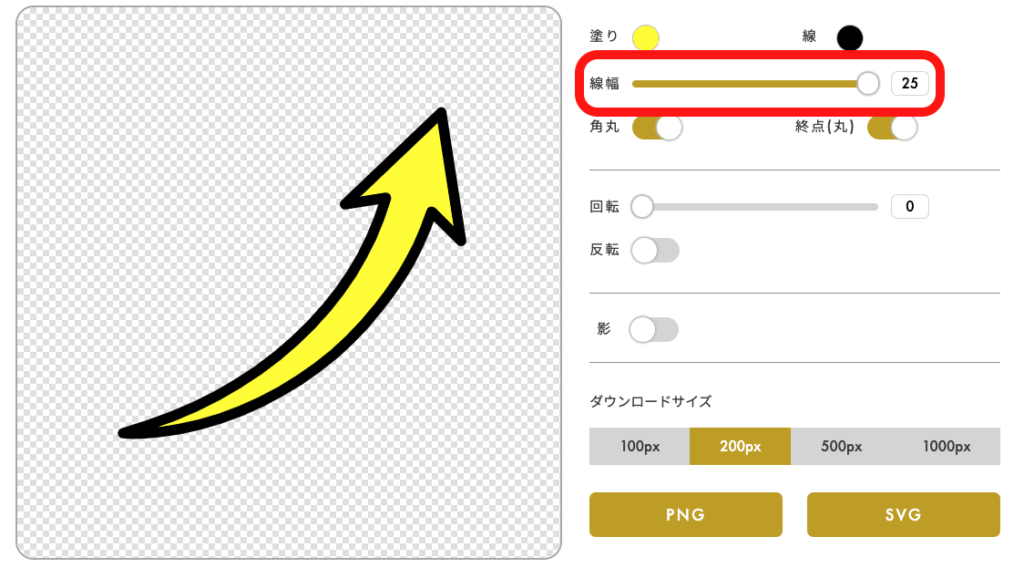 矢印の線の幅を指定することができます。